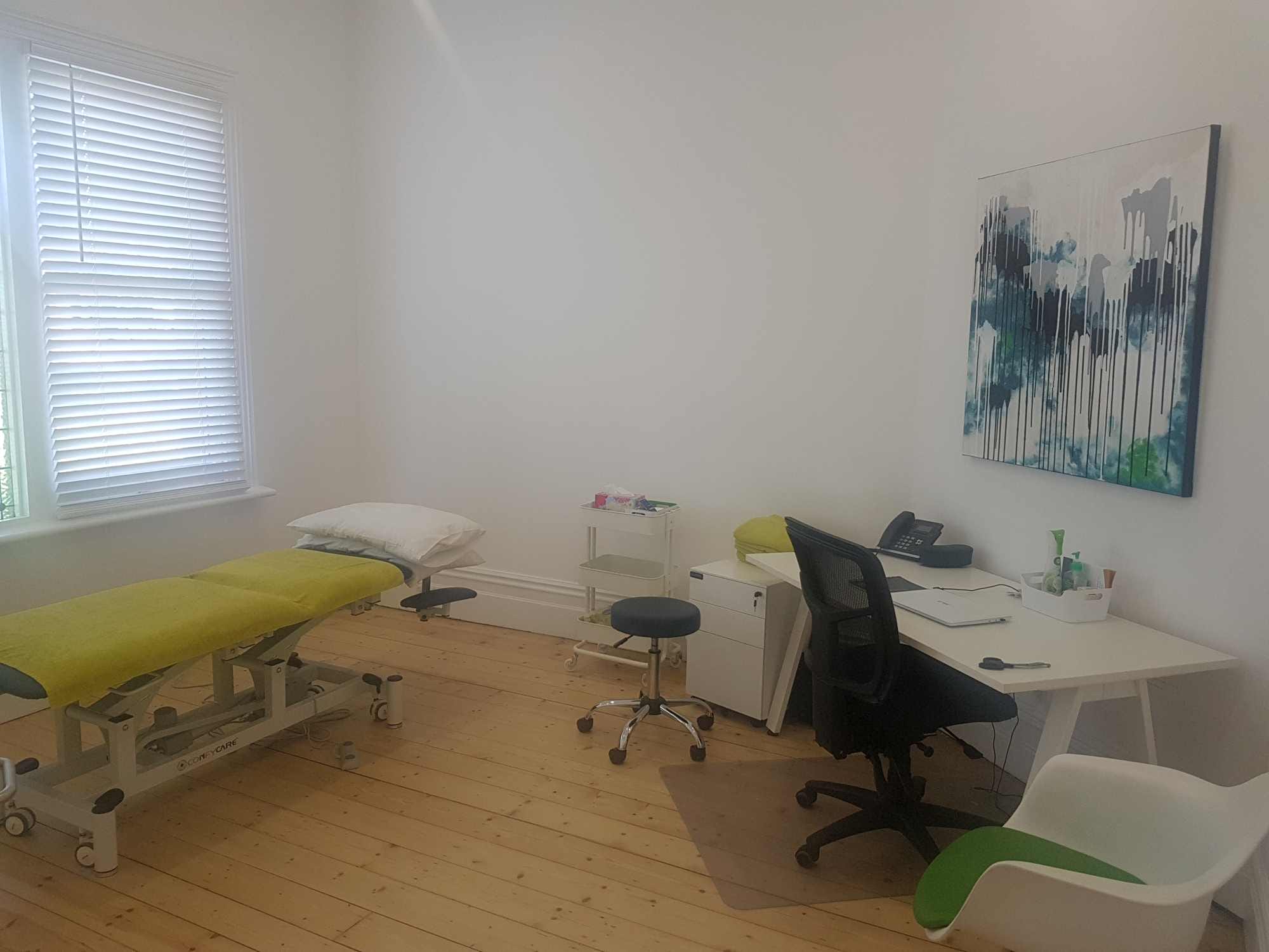 Practitioners share access to a generous reception and waiting area (approximately 12 m × 5 m with 5 m ceilings), modern amenities, kitchen facilities, and high-speed NBN. The clinic also includes an onsite 10 m × 10 m rehabilitation / exercise gym, available for practitioner use outside of existing clinic bookings, including all evenings and weekends, and at other times by arrangement.
