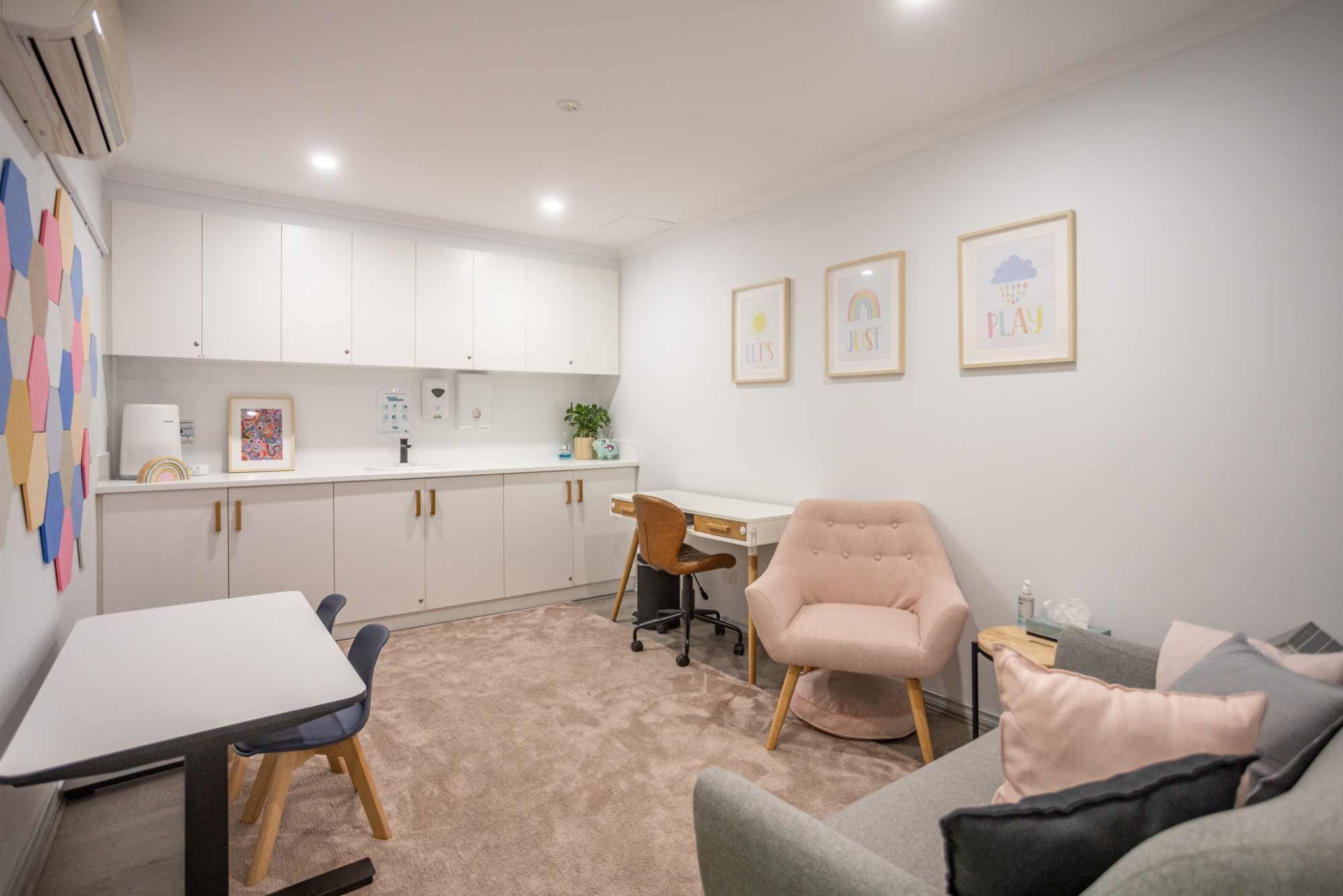 The therapy rooms are all fully furnished, with secure storage space within each room. There is a shared waiting / reception area, restroom, as well as access to a shared kitchenette and therapy sensory garden. The Clinic is located in the vibrant Macleod Village, with a large parkland and playground opposite and train station nearby.